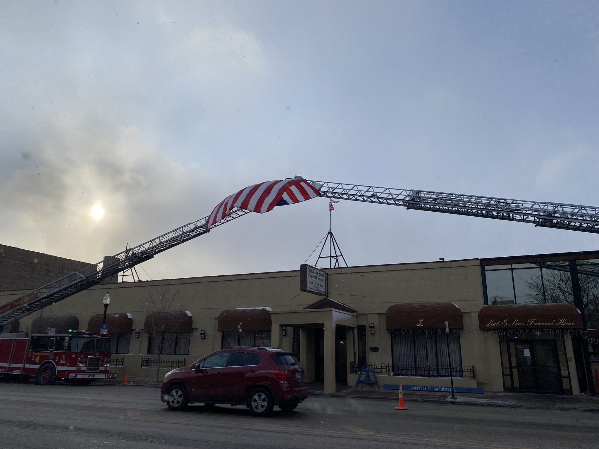 Mike Lowe On Twitter Two Chicago Fire Dept Trucks Adorned With An Americanflag Formed An Arch Over The Entrance Of Leak And Sons Funeral Home In The Chatham Neighborhood On The South